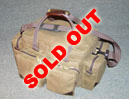 Shooting Bag: This classic shooting bag is made of dry waxed cotton with leather and heavy web trim. The main compartment with two removable dividers, measures 12”(L) x 9”(H) x 8 (W) has a box lid top The two front pockets measure 5(W) x 6”(H) x 21/2”(D), and the two side pockets measure 7”(L) x 7”(W) x 21/2”(D). Other features include rubber bumpers, a hard bottom, detachable adjustable shoulder strap with non-slip pad, delrin hardware and a leather handle wrap. Color: tan. Made in USA |