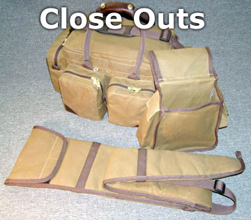 This run of tan dry waxed cotton gear is being made available due to a cancellation of a corporate sporting clays event. No logo or brand names are on the pieces. Limited quantities available. Made in USA.