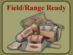 Our Field/Range Ready items are constructed of the same waxed cotton and trimmed-out the same as our kit bags to compliment them nicely.The Premium All-Leather group is made out of the same top grain leather and features nickel plated brass rivets at all stress points.